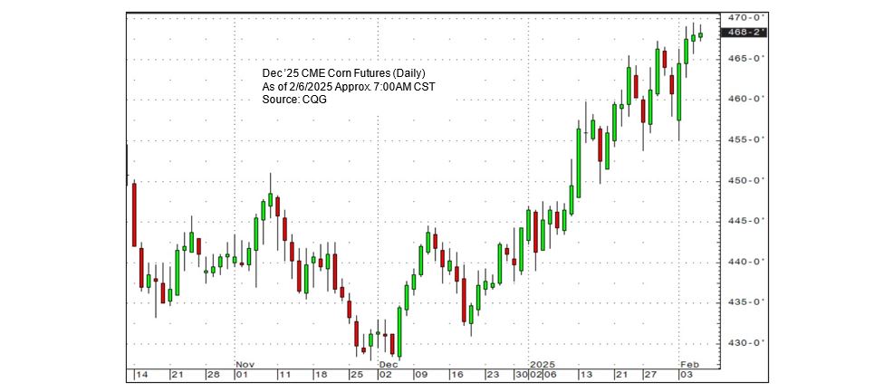 CME corn prices rallied this week after the Trump administration announced a one-month postponement of its import tariffs on Mexican goods. Looking ahead, the corn market could face heightened volatility in the coming months due to trade tensions and fluctuating global stock levels. That said, prices may remain range-bound for some time.