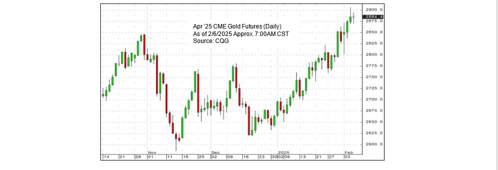 After months of stagnation, gold prices rallied through January and early February, reaching a new all-time high this week. Gold and the US dollar typically move inversely, but that correlation has weakened in recent weeks as investors seek “safe-haven” assets amid escalating trade tensions and economic uncertainty.