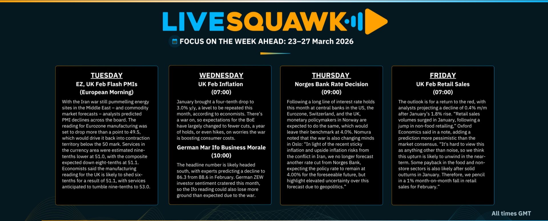 It is a quieter week for top-tier data, though the Middle East conflict remains front and centre. Markets are expected to continue taking their cue from geopolitical headlines and political rhetoric.